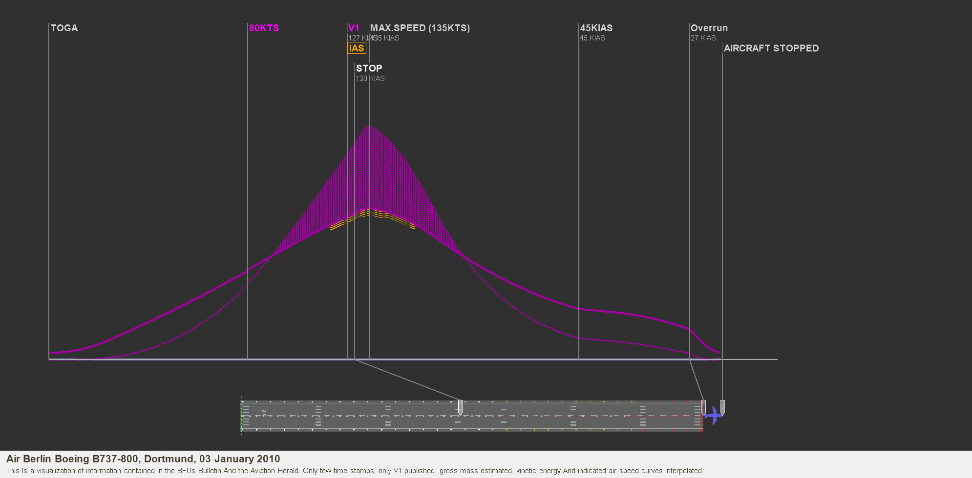 - The take-off was rejected, maximum speed 130 knots ground speed, equivalent to about 135 KIAS.