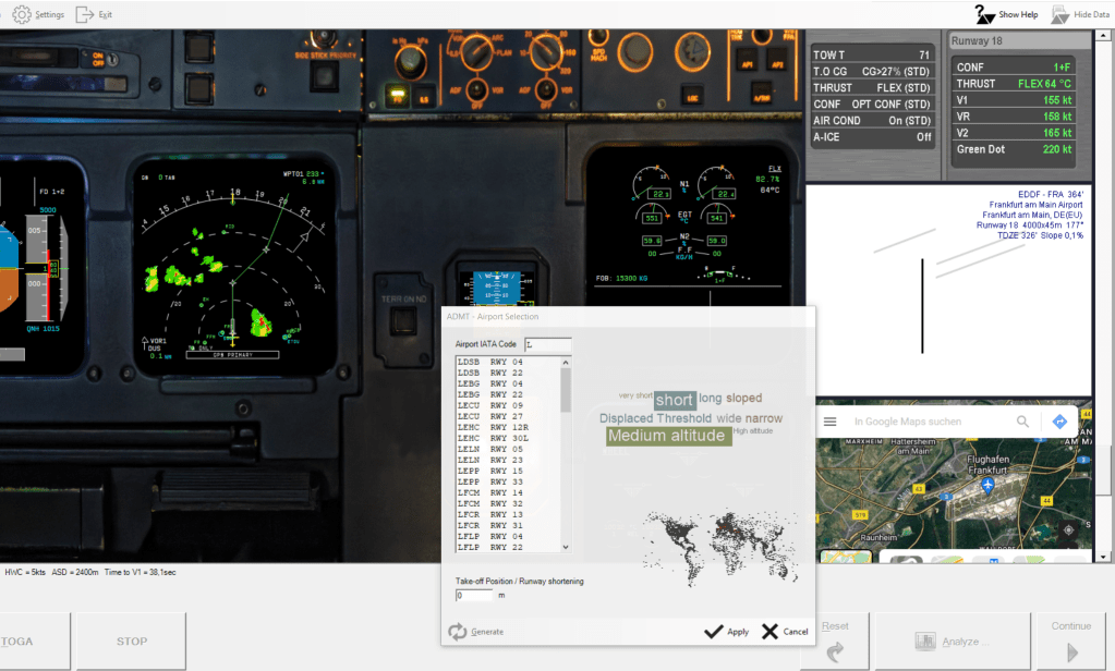 If you need to demonstrate special performance or decision making aspects, you can find the right runway easily using keywords like “high altitude” or “short”.