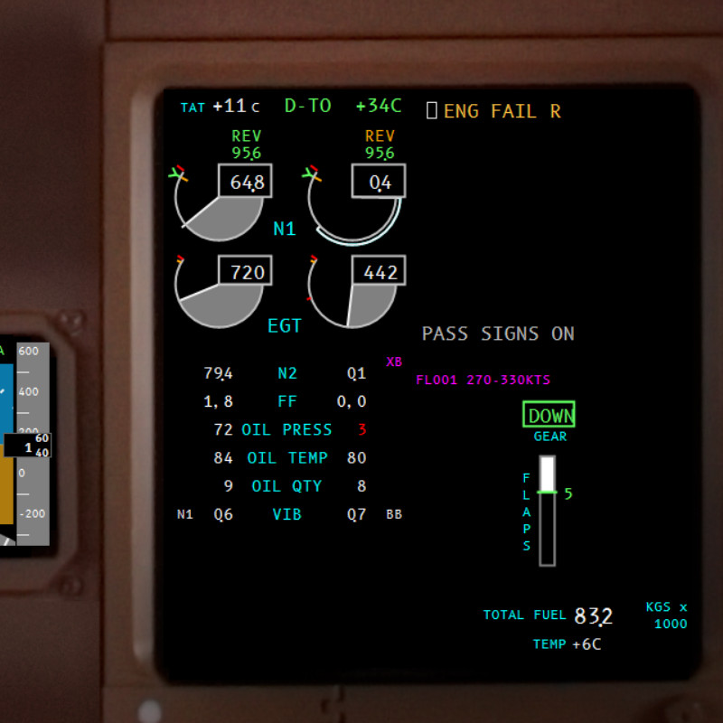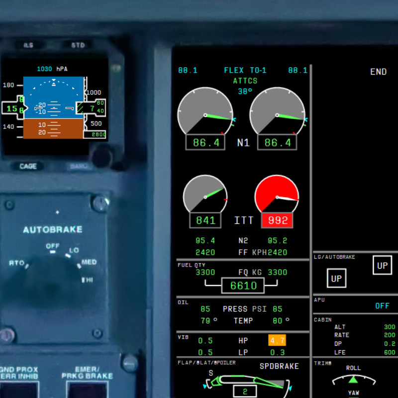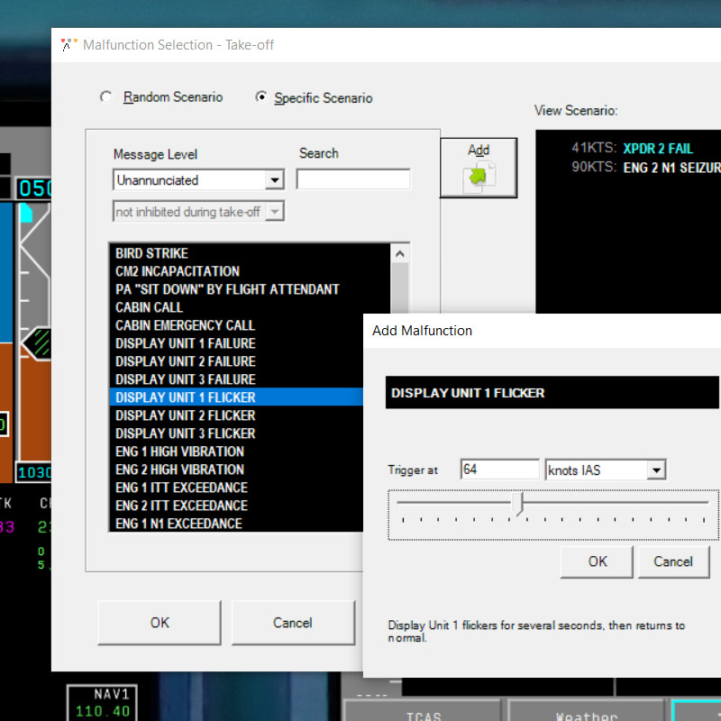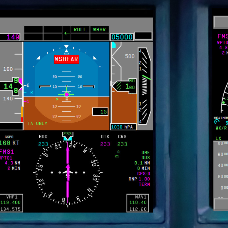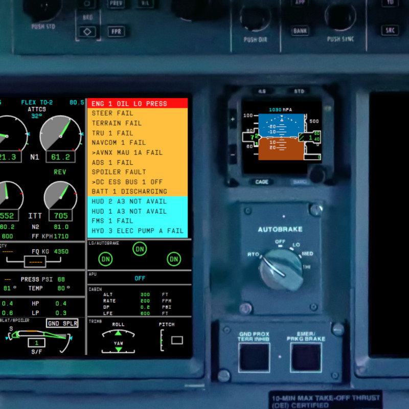 Also available are observed faults like display failures, engine parameter exceedances, indication problems including unreliable airspeed; other occurences like windshear, bird strike, or cabin calls. Intermittent malfunctions can also be simulated – ambiguous scenarios from the real world.
