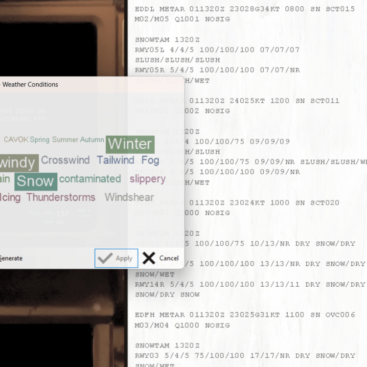 Hundreds of type specific malfunctions (presently modelled for A320 family, Boeing 777, and Embraer E195)